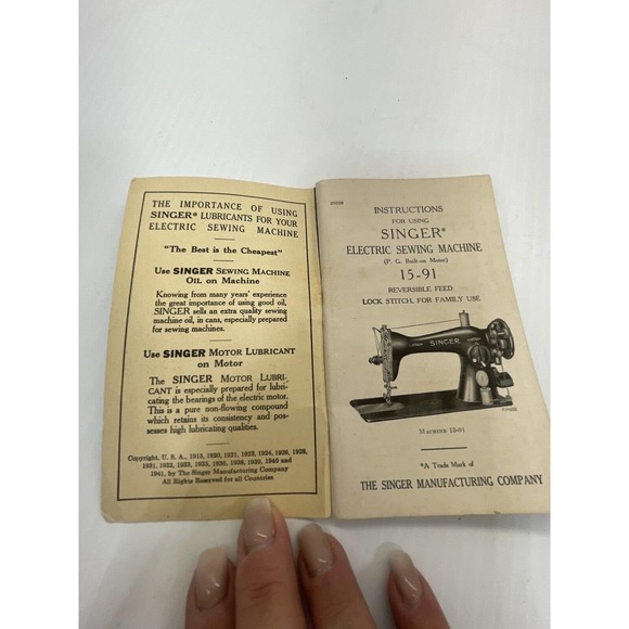 Singer Accents Vintage Instruction Manual Singer Electric Sewing Machine 591 Green Book 1941 Poshmark